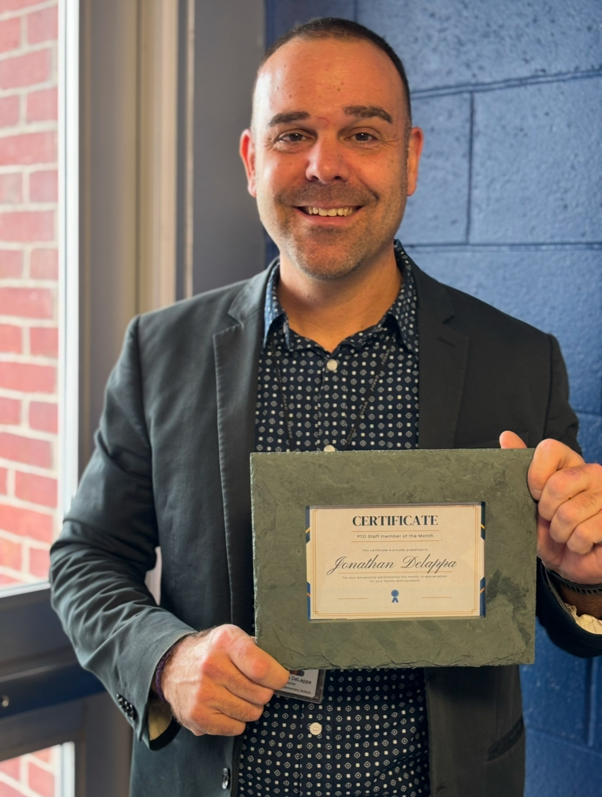 Thank you to the Granville PTO for sponsoring this monthly activity and gifting our staff with a beautiful slate frame and gift certificate to Indulge pizza.