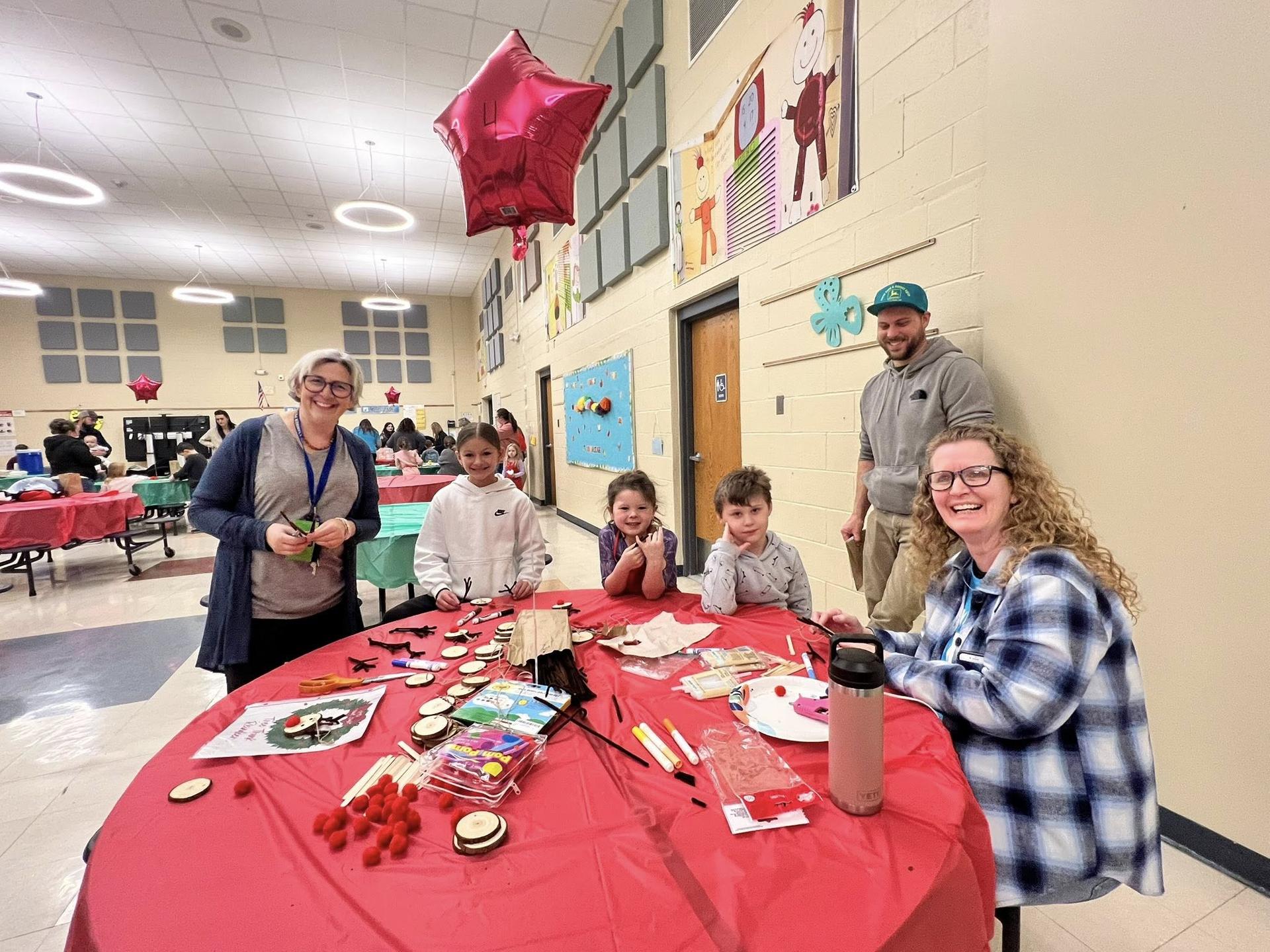 PTO Paint and Cocoa Night at GES with students, families and Art Teacher, Ms. Dashef (on far left) and 5th Grade Teacher, Mrs. Bishop (far right). |