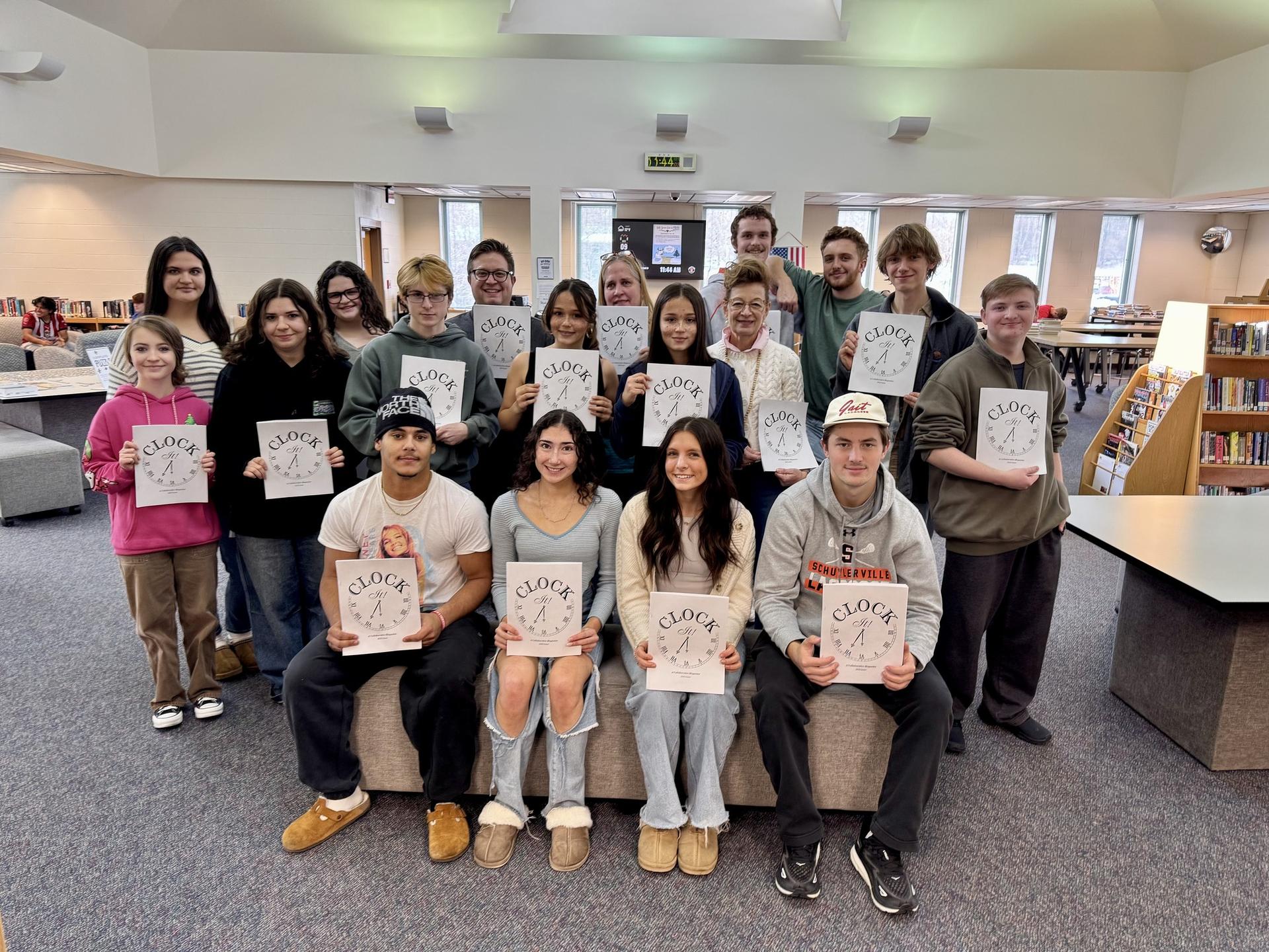 "Seniors enrolled in Ross Marvin’s Journalism course, along with distance learning students from Amsterdam and Granville, all came together in person to celebrate the official publication of their 2025 collaborative magazine, "Clock It."