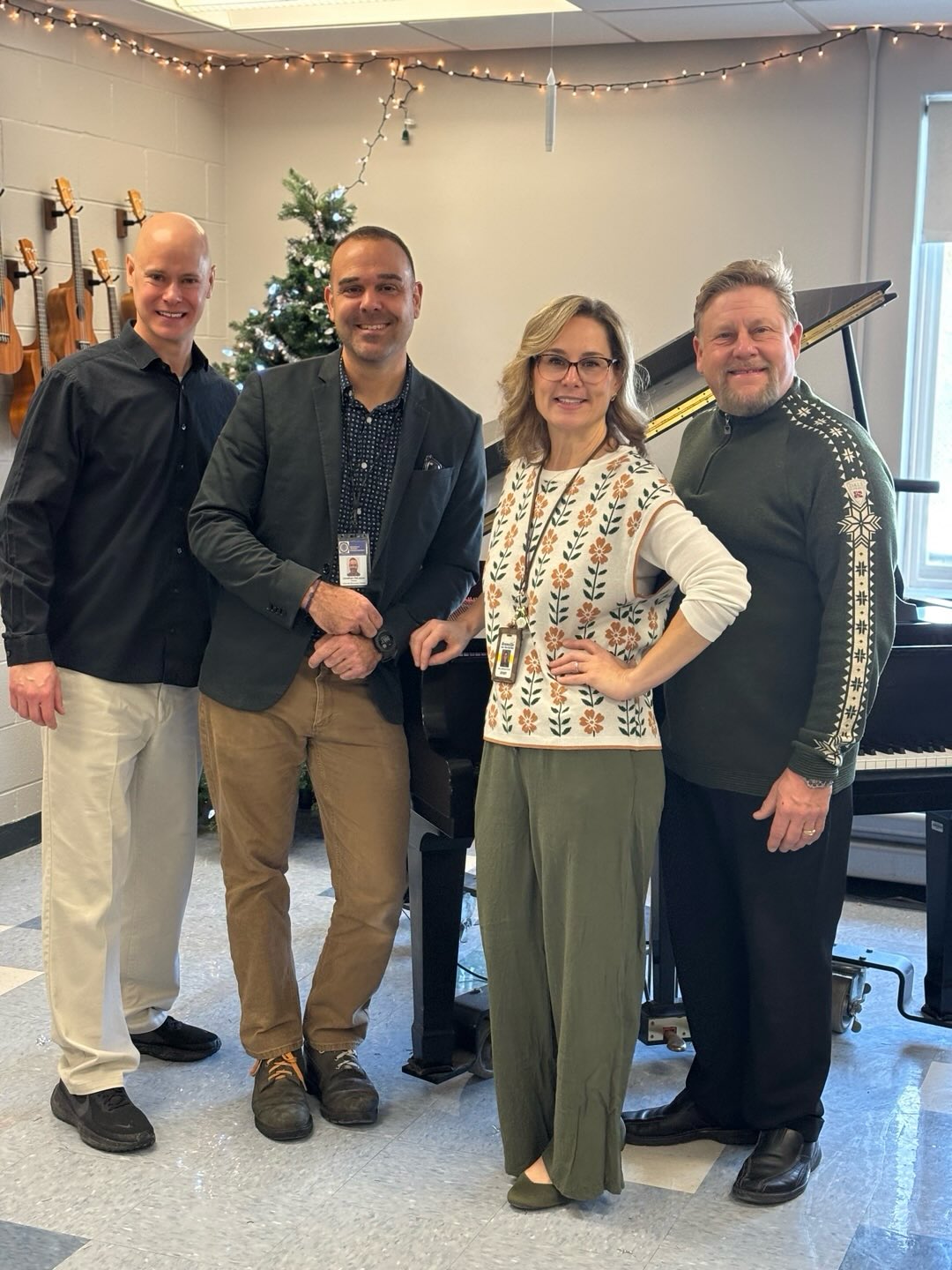 From left to right - Mr. Tuttle (GES/MJT Chorus), Mr. DeLappa (GES/MJT Band), Mrs. Stout (Jr/Sr High Band Director) and Mr. Schenk (Jr/Sr High Interim Choral Director).